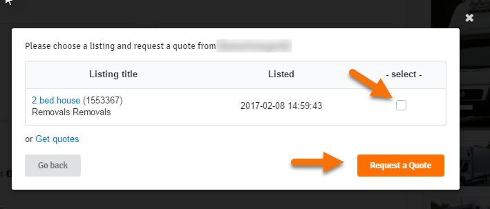 3. Choose your listing and confirm by clicking ‘Request a Quote’
