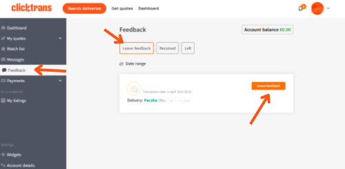 2) Go to Feedback > Leave feedback and click Leave feedback next to the transaction you wish to rate.