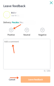 3) Choose feedback type (positive, neutral, negative) and add a comment.