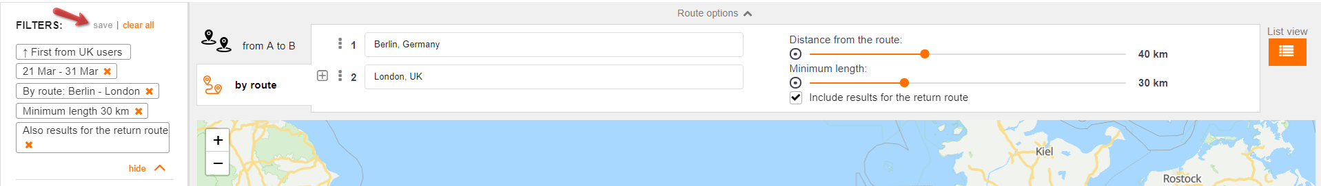 often travel on certain routes or search for similar job types, consider saving chosen filters, so that you can easily